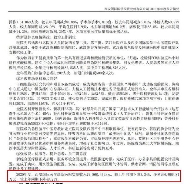 国际医学的财报显示,西安高新医院是其重要的营收及利润来源。2020年度,西安高新医院收入7.99亿元,实现净利润6066.81万元。