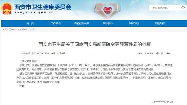中新财经注意到,根据西安卫健委官网,2011年,西安高新医院经营性质由非营利性变更为营利性。