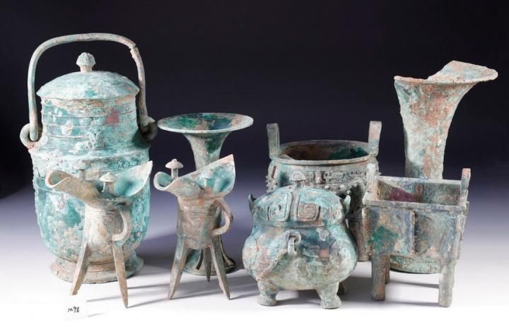其余葬墓中,共出土青铜礼器20余件套,器型有鼎、觚、爵等,部分有铭文“册”等。此外还出土了数量丰富的青铜兵器、车马器、玉石器、骨蚌器等。在遗址中还出土一件青铜觥盖,上有铭文12字,非常少见。