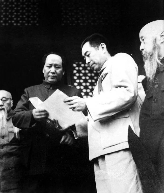 1949年10月1日,周恩来出席开国大典。多年后,苏联驻华最高长官齐赫文斯基院士回忆,那天凌晨见到了周总理:“周恩来站在那里,脸色苍白,双目紧闭,身边两个警卫搀扶着他。周恩来的秘书赶忙走过来,请我不要打搅总理,他四天四夜没合眼,一直忙于政治协商会议的工作。”