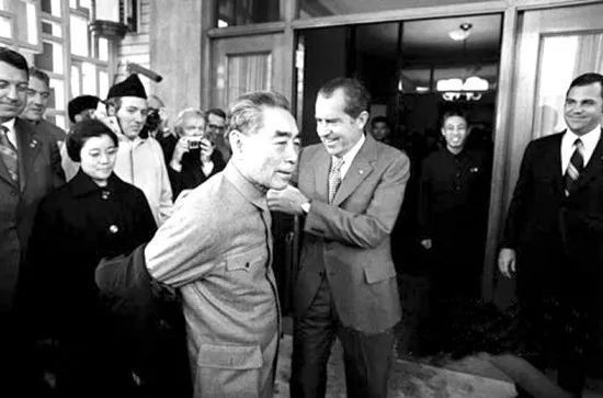 △尼克松知道周恩来手臂受过伤,亲自帮周恩来脱外套。尼克松曾说:“我个人很敬佩周恩来总理。他举止优雅,姿态从容。‘恩来’译成英文是‘恩惠降临’之意,他的名字容括了他的风度(参数丨图片)和气质。”