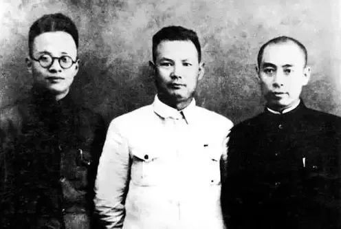 △西安事变时赴西安谈判的人员:叶剑英(中)、秦邦宪(左)、周恩来(右)