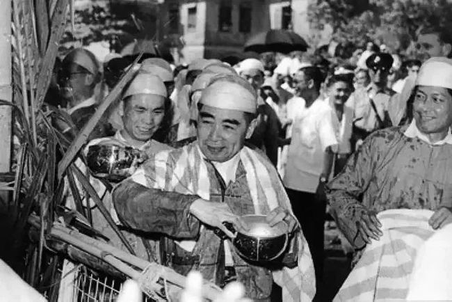 △1960年4月,周恩来同缅甸人民欢庆泼水节。