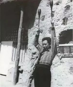 △1940年,周恩来手臂受伤恢复后,在锻炼臂力。