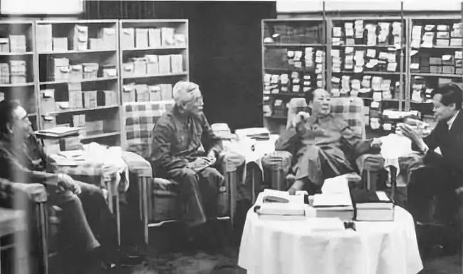 1974年,病重的周恩来陪同马来西亚总理拉扎克会见毛泽东。
