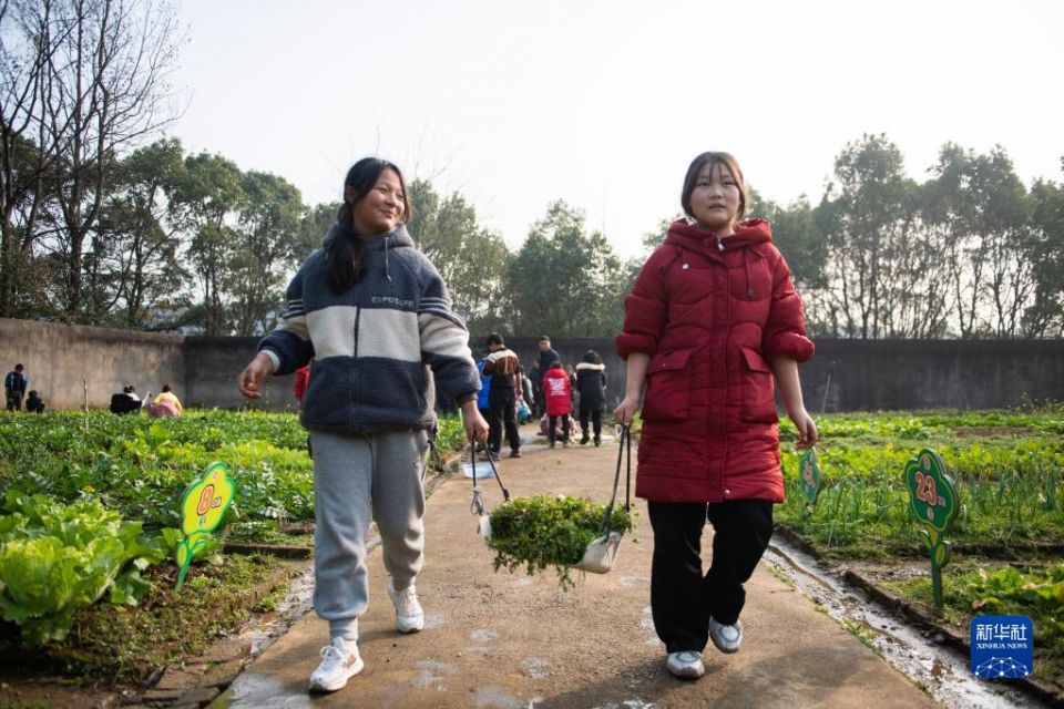 首页 “开心农场”助“双减” 2022-01-12 07:20:02 分享 1月11日,汇华聚宝小学的学生在清理杂草。为响应国家“双减”政策,丰富学生课余生活,湖南省常德市武陵区河洑镇汇华聚宝小学将校内的一块荒地打造成约1200平方米的“开心农场”,开展一系列劳动教育实践活动,让学生亲近大自然,提高动手能力,在劳动中陶冶情操。新华社记者 陈思汗 摄