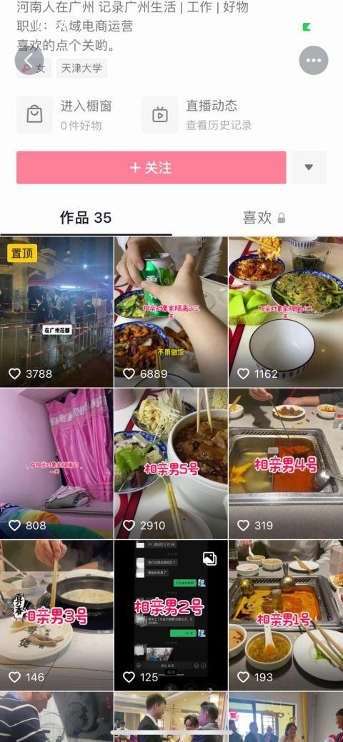 △当事人下架部分视频前的社交平台界面女子在社交平台里介绍,她本身是一名电商运营的从业者。此前她曾像“连续剧”一样更新了其他四位相亲男的视频,目前这些视频均已被她下架。这一行为引发部分网友质疑:“电商运营,不停地相亲,难免不让人怀疑她的动机!”