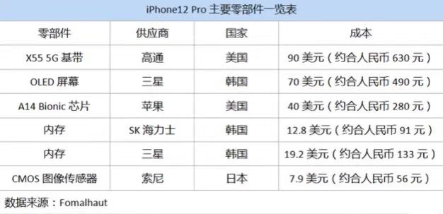 那么对于苹果来说,自研基带到底要比高通提供的产品便宜多少呢?我们不妨算一笔账,根据Fomalhaut 数据报告显示,iPhone 12系列所搭载的外挂高通X55 5G基带的成本高达630元,远比iPhone 自研的A14处理器贵得多,这也是外挂基带的弊端之一。