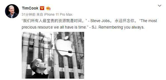 商业 苹果CEO库克发文纪念乔布斯逝世8周年:永远怀念你 2019-10-06 09:34:31 分享 来源:腾讯科技苹果公司CEO蒂姆-库克今日发文怀念苹果公司已故创始人史蒂夫-乔布斯。在文中,库克引用了乔布斯的语录称:“我们所有人最宝贵的资源就是时间。” - Steve Jobs。而配图照片为,乔布斯在纽约市苹果第五大道零售店的标志性立方体上的影像。2011年10月5日,苹果创始人乔布斯因患胰腺癌去世。今天则是他逝世8周年的纪念日。此外,苹果还继续保留着“记住史蒂夫”页面,滚动着展示了来自世界各地的超过一百万人,所分享的他们对史蒂夫的回忆、思考和感受。