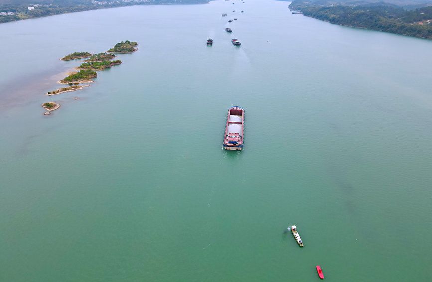 船舶有序航经浔江3000吨级航道平南三桥航段。林迪摄