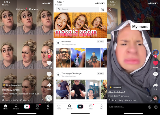 与Snapchat和Instagram不同,TikTok不是关于你或你在做什么的,而是如何娱乐你的观众。它不是对你真实生活的自发记录,而是与创造人物,装扮成其他人,表演笑话有关。它也不是关于隐私和朋友的,甚至不注重原创性(Instagram的核心)。