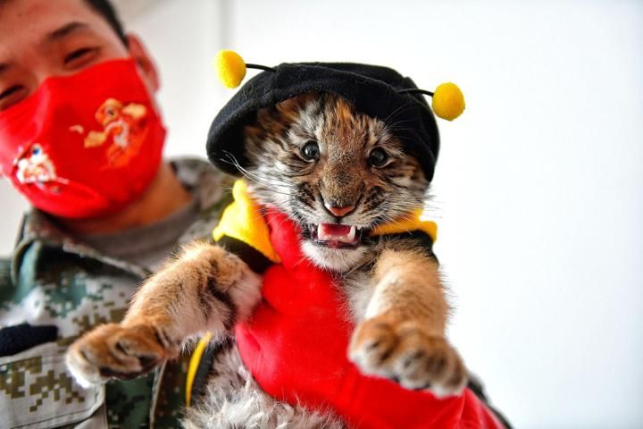 科创 河南洛阳:华南虎幼崽活泼可爱 2022-01-19 07:53:42 分享 河南省洛阳市洛阳王城公园两只新生华南虎幼崽活泼可爱。这两只华南虎幼崽为一公一母,分别出生于2021年9月25日和2021年11月12日,均为人工育幼。华南虎是中国独有虎亚种,又称中国虎,被列为世界极度濒危的十大物种之首。作为我国最北端的华南虎人工繁育基地,洛阳对挽救华南虎种群作出了突出贡献。截至2022年1月,该园华南虎总量已达到65只,连续8年数量保持全国第一,也是全球第一。张光辉摄(视觉中国)