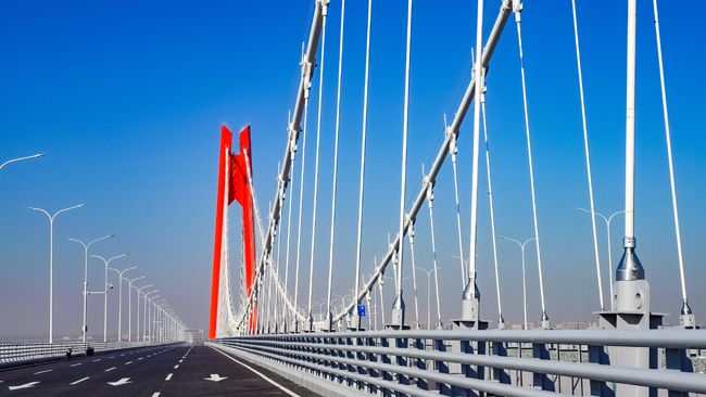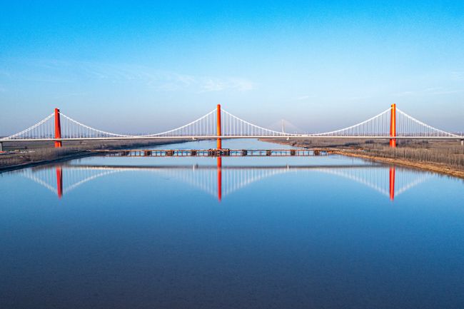 “这是一座经济之桥、环保之桥、耐久之桥、革新之桥。”济南市城乡交通运输局相关负责人表示,大桥钢结构施工体量大,总用钢量约11.4万吨,约为辽宁号航空母舰标准排水量的2倍、鸟巢用钢量的2.7倍,施工期间污染小,施工周期短;主桥、水中引桥及跨大堤引桥的全长2788米范围内,均采用正交异性钢-混凝土组合桥面板,增加结构耐久性和可维护性;施工过程中,通过一系列施工工艺及技术装备革新,实现了钢箱梁大节段工厂化制造、智能化运输及提升、信息化多点步履式顶推等施工方式,大大提升了推进效率。