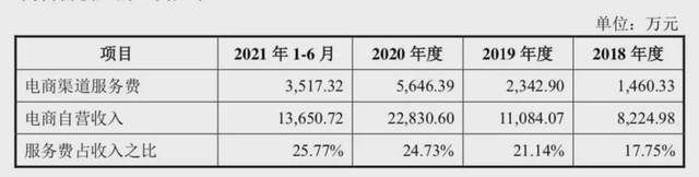 阿宽食品电商渠道服务费与电商自营收入之比来源 / 招股书