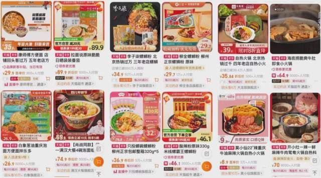 电商平台各品牌的方便面、螺蛳粉和自热火锅 来源 / 淘宝