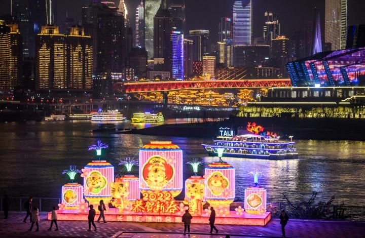 科创 重庆南岸:迎春灯饰扮靓城市夜色 2022-01-23 08:13:49 分享 迎春灯饰与繁华的城市夜景交相辉映,营造出喜庆的节日氛围。郭旭摄人民网重庆1月22日电 (常碧罗、陈琦)随着新春的临近,重庆市南岸区南滨路上的迎春灯饰纷纷亮了起来。树上红的、黄的灯笼,象征着团圆、兴旺、红火,为市民营造出火树银花不夜天,流光溢彩过新年的视觉盛宴。春节的脚步越来越近,年味儿也越来越浓。