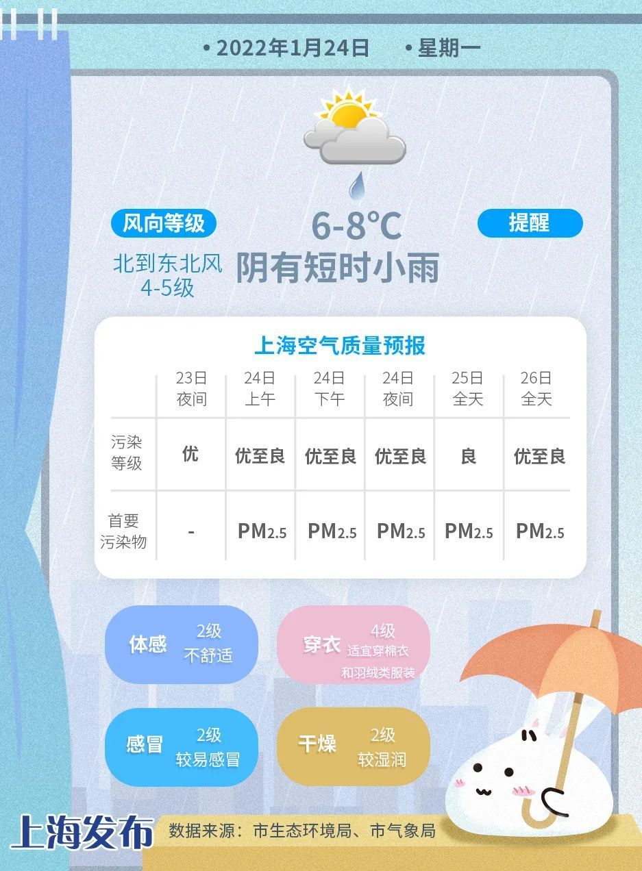1月26日(周三):阴有阵雨,6-8度