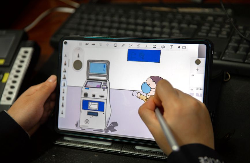 邓璇手绘宣传画。韦生辉摄