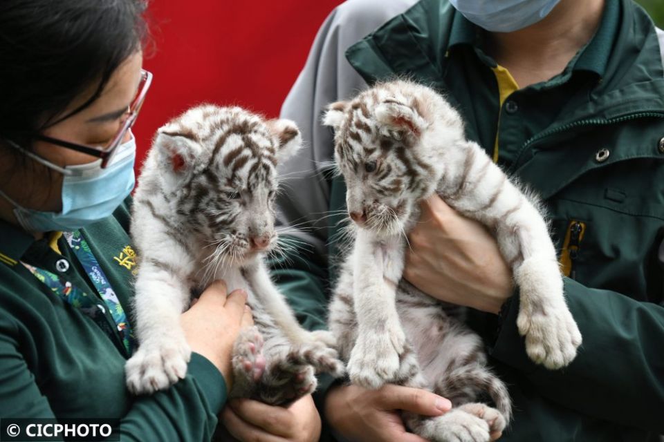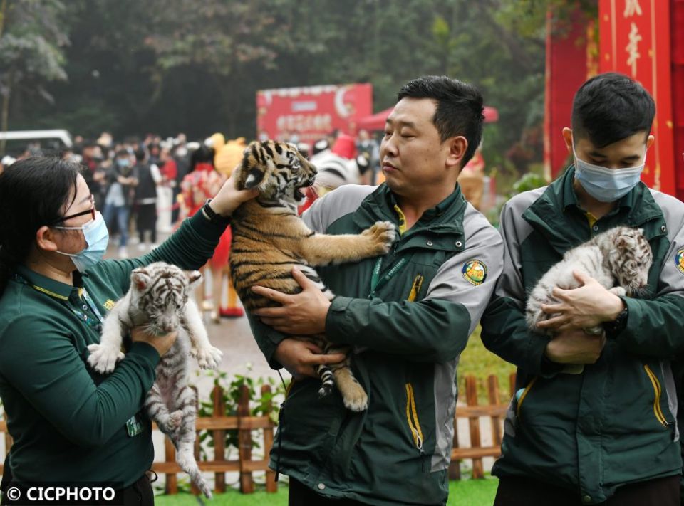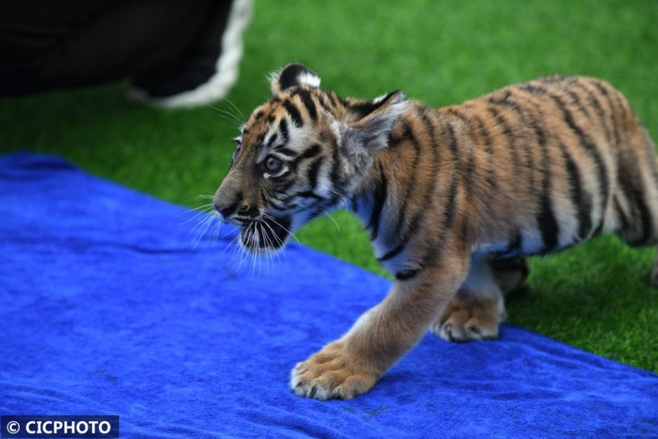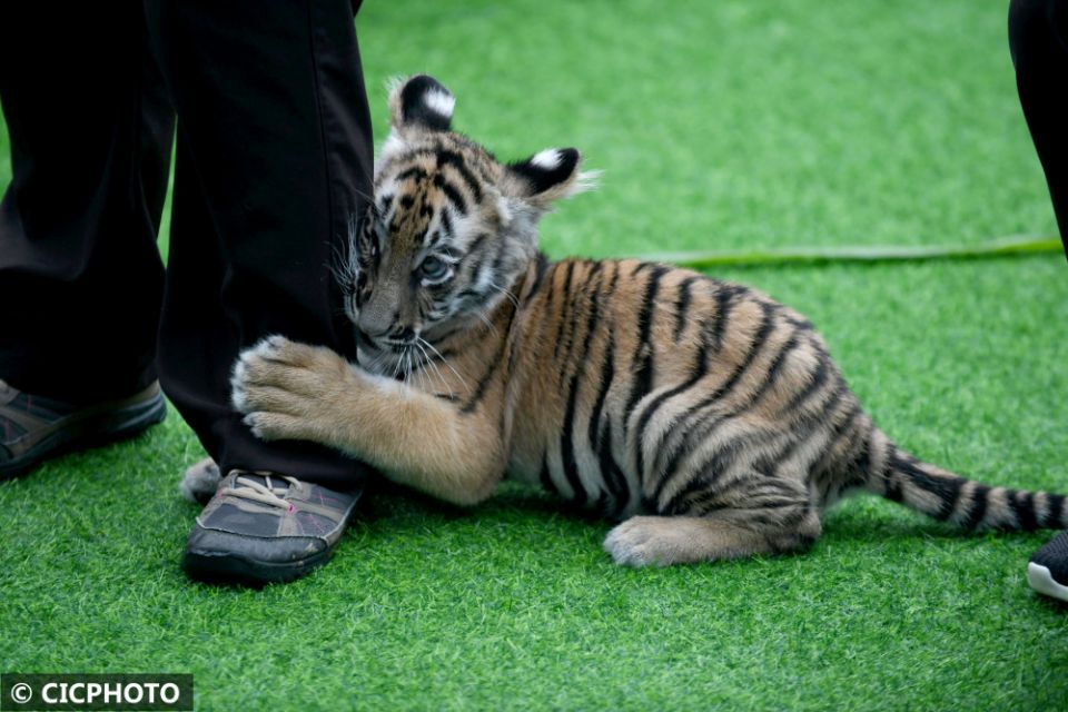 ↑在广州长隆野生动物世界,幼虎亮相新虎区落成仪式。CICPHOTO/许建梅 摄