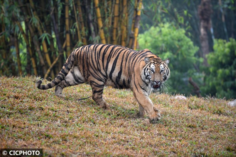 ↑在广州长隆野生动物世界新虎区内拍摄的的孟加拉虎。CICPHOTO/许建梅 摄