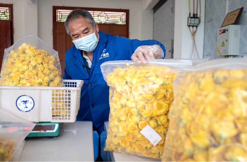 脱水烘干金花茶。张晓冬摄