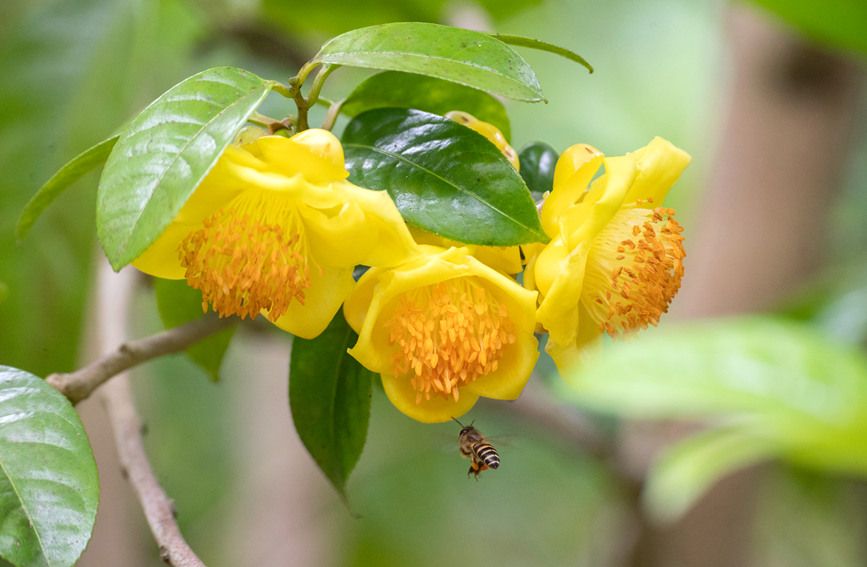 被誉为“植物界大熊猫”“茶族皇后”的金花茶,是十万大山一带特有的古老植物,早在1984年就被列为国家一级保护植物,极具观赏和药用价值。