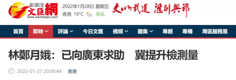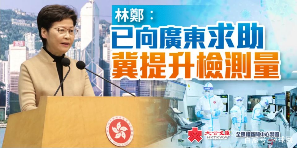 林郑月娥27日表示,已向广东省求助,希望可以帮助香港提升病毒检测能力。图自香港“大公文汇网”