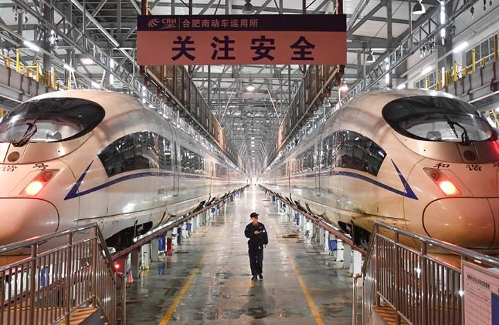 凌晨一点,检修好的一列动车,驶离车库迎接新的乘客。随着春运高峰的来临,今年春节期间,合肥南动车运用所将有200多名检修人员坚守岗位,以彻夜不眠的付出守护着旅客的平安出行。