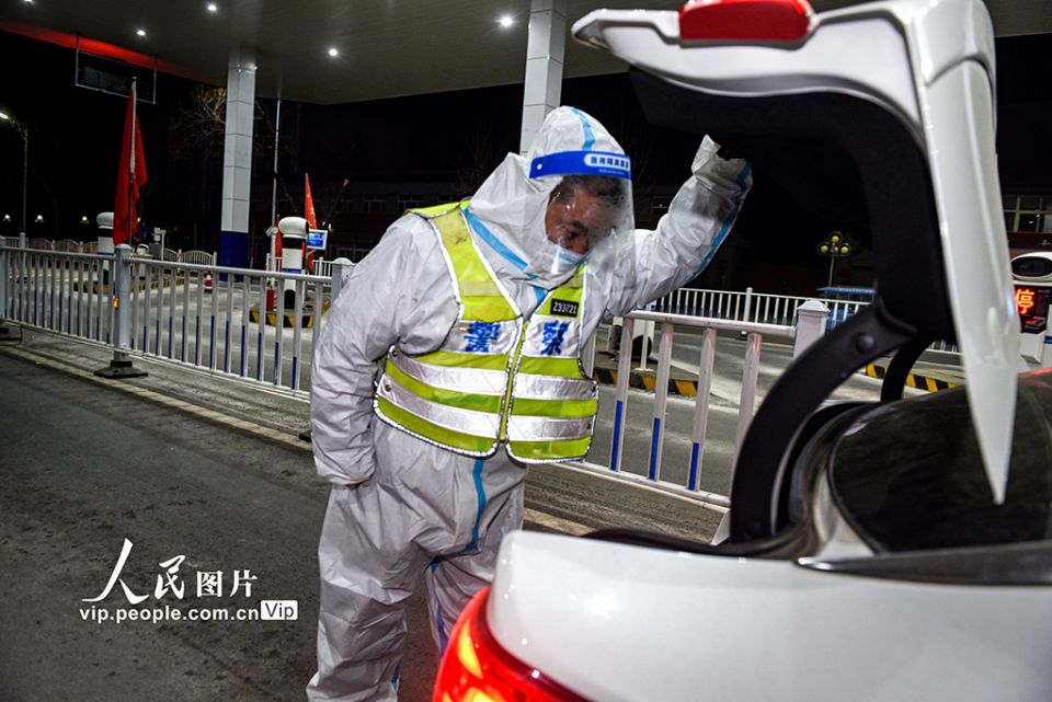 2022年1月31日,除夕夜,河北省涿州市公安交警在107国道挟河进京检查站,例行安全检查,符合要求才可放行。刘永兴摄(人民图片网)