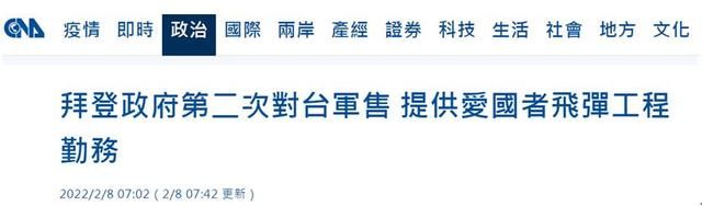 报道还称,美国国防部国防安全合作局已经将这项军售正式知会国会,这是美国总统拜登去年1月底上任以来第2次对台军售。