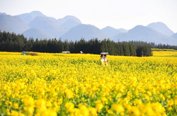 近日,云南省曲靖市罗平县的近百万亩油菜花相继开放,吸引游客纷至沓来,感受春天的气息。毛虹摄(人民图片网)