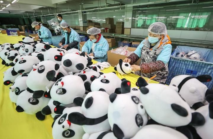 站在忙碌的生产车间里,连海安身后是忙碌的工人和堆成小山的“冰墩墩”半成品。“一只‘冰墩墩’从原材料到包装完成需要约50道工序,最快要半小时完成。我们已经给所有工人买了机票,让他们提前返厂复工了。”连海安说。