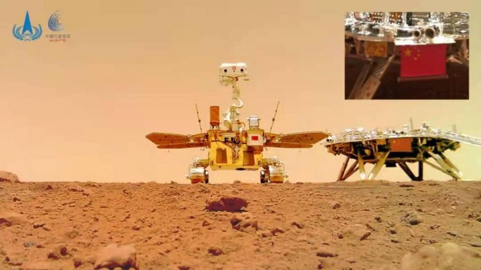 环绕器与火星合影。新华社发(国家航天局供图)