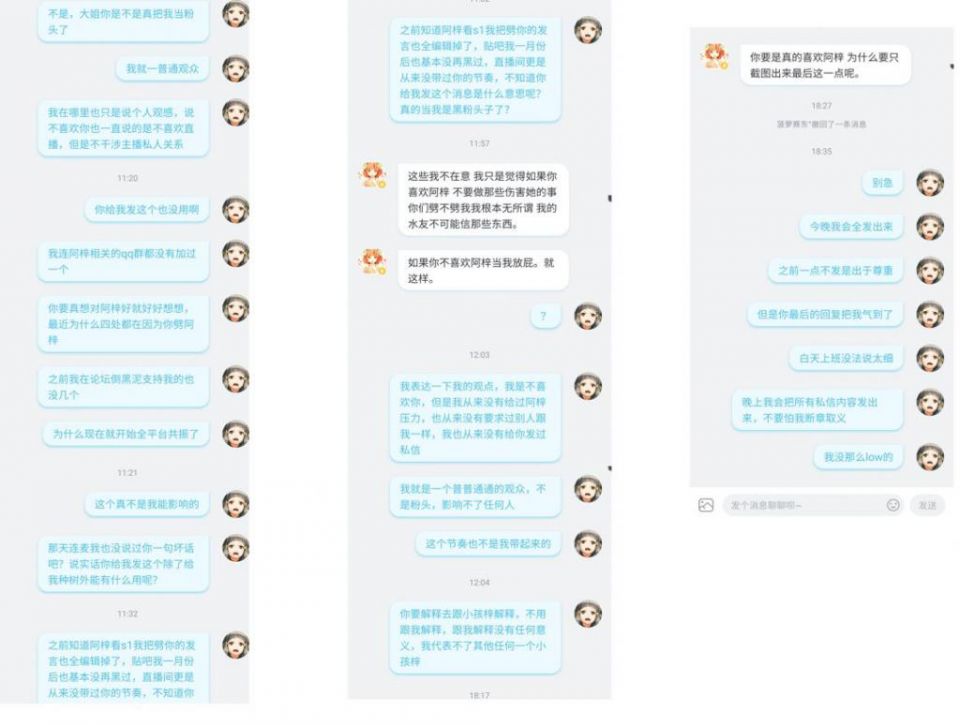 具体对话小雷就不过多复述了,感兴趣的读者可以在 B 站搜索相关视频,随后自然是引起了粉丝的强烈不满,粉丝认为自己是为了 " 阿梓 " 不吃亏才出言规劝,结果在偶像眼中却成为了 " 粉丝限制主播交友 ",让粉丝有一种 " 好心当作驴肝肺 " 的感觉。