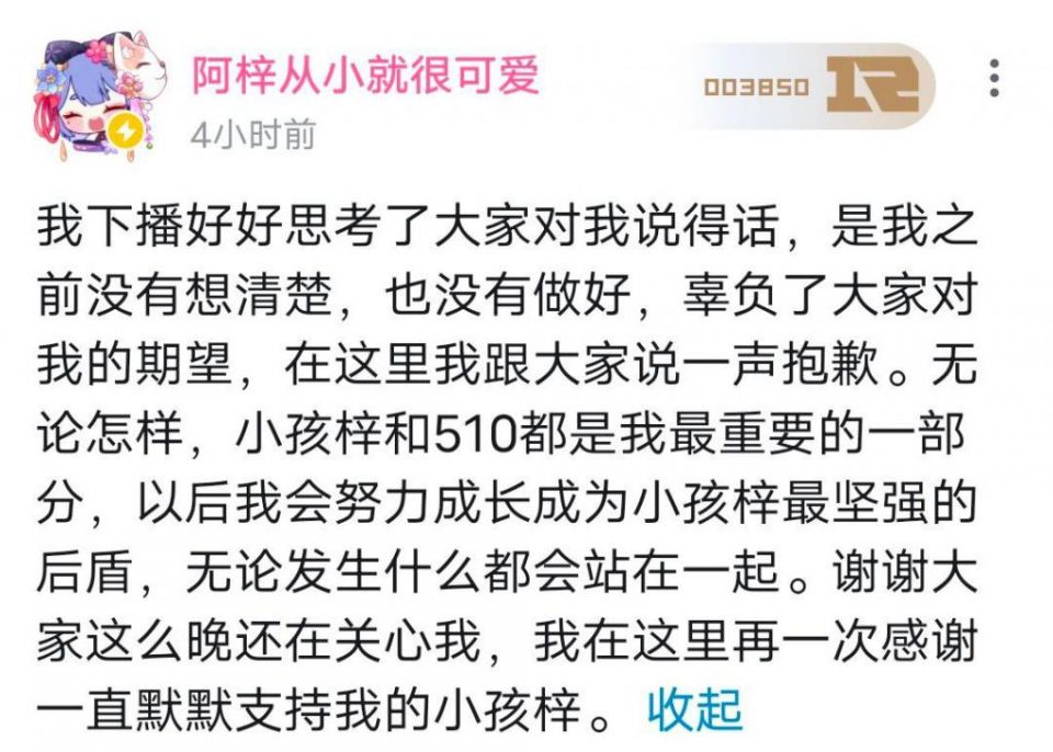 纵观整个事件,小雷不好说哪一方有对哪一方有错,只不过在看完了相关视频后,小雷的第一个感想就是:" ‘阿梓’的情商属实有点低 ",而且这位主播似乎并不能够很好的管理自己的情绪。虽然最后以道歉收场,但是从结果来看,已经是失去了相当一部分粉丝的支持。