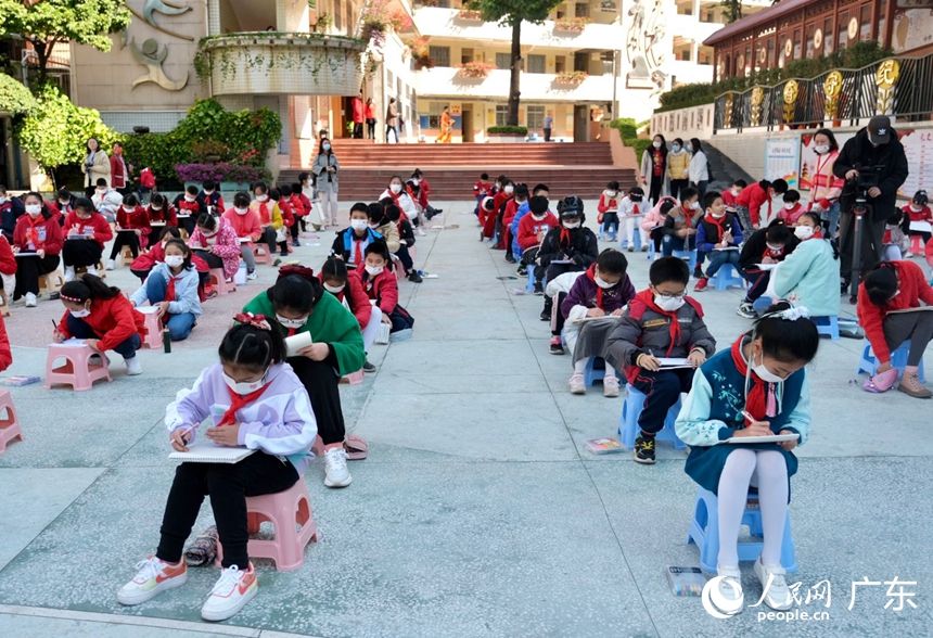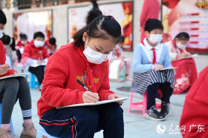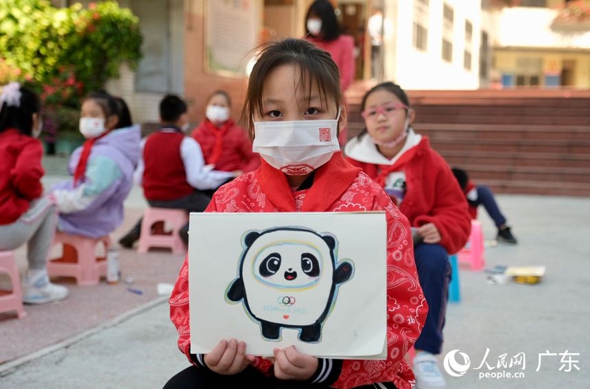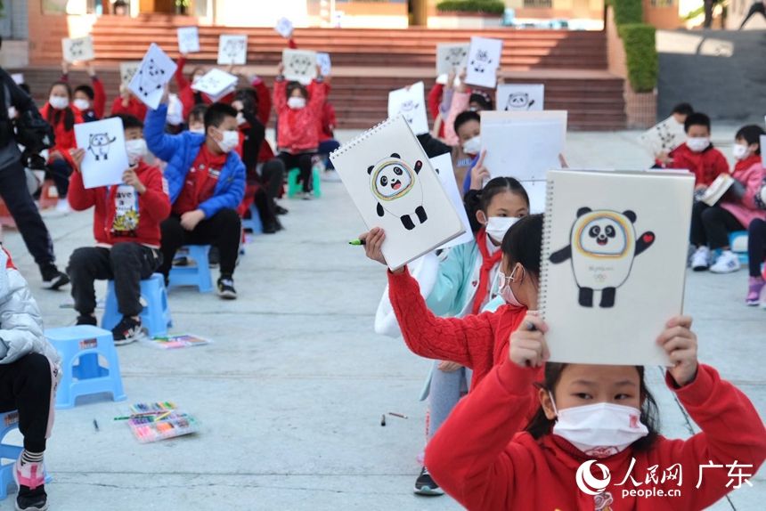 人民网广州2月14日电 (马晓楠)2月14日,广州中小学迎来春季开学日。恰逢北京冬奥会正在火热举行,越秀区署前路小学全校同学在美术老师带领下,手绘北京冬奥会吉祥物——冰 墩墩,为体育健儿们加油助威。为传承传统文化,感受广东地区过年习俗,学校龙狮队还来到各间课室拜年,同学们开心地摸狮头。