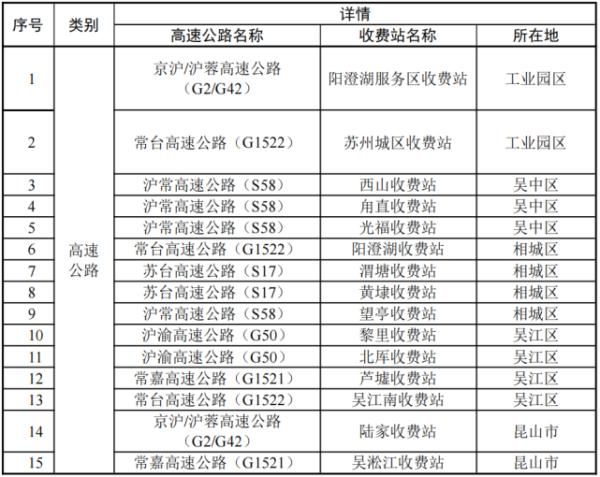 高速公路离苏通道关闭清单