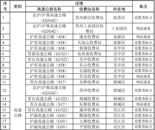 离苏通道查验点设置清单