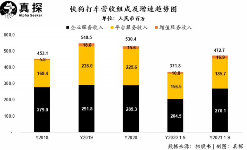 根据招股书披露,快狗打车在2018年、2019年、2020年及2021年前9个月,分别实现营收4.53亿、5.49亿、5.3亿以及4.73亿元,也就是说,其在2018年-2020年间营收增长持续放缓。