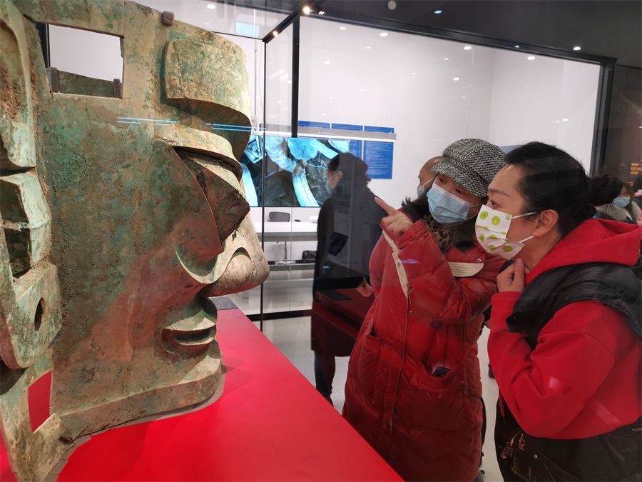 三星堆博物馆景区管委会规划建设部部长朱亚蓉表示,为了响应广大群众的观展需求,三星堆博物馆调集了专业的物流、展陈公司,特别定制了展柜,调整展馆展线,最终确保青铜大面具能够在元宵节与公众见面。“这充分体现了三星堆遗址‘保护成果人人共享’的保护利用理念和三星堆博物馆‘以人为本’的办馆理念。”朱亚蓉说。
