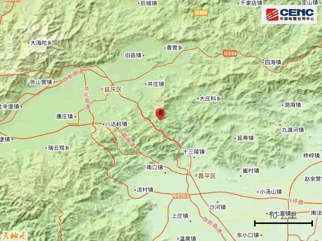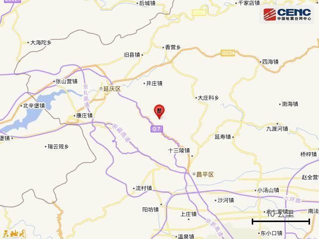 首页 北京延庆区发生1.5级地震 2022-02-16 10:54:47 分享 据中国地震台网正式测定,2月15日21时7分在北京延庆区发生1.5级地震,震源深度15千米,震中位于北纬40.37度,东经116.13度。震中5公里范围内平均海拔约679米。根据中国地震台网速报目录,震中周边200公里内近5年来发生3级以上地震共13次,最大地震是2018年2月12日在河北廊坊市永清县发生的4.3级地震(距离本次震中121公里),历史地震分布如图。【来源:中国地震台网速报】