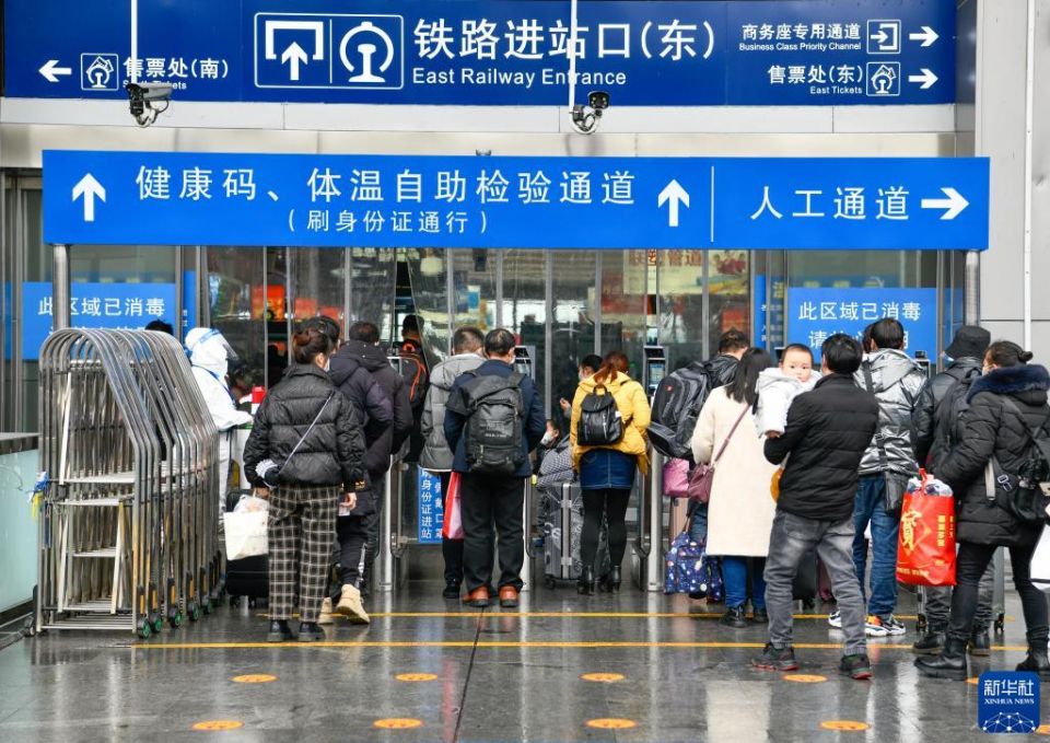 2月16日,旅客在贵州省贵阳北站进站乘车。