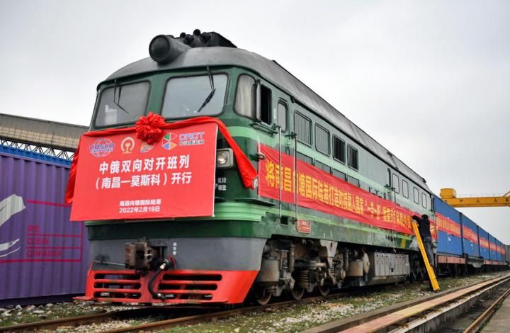 科创 2022年江西首列中俄双向对开班列成功实现往返对发 2022-02-21 07:42:23 分享 2月19日,由中远海运承运的2022年江西省首列中俄双向对开班列(南昌-莫斯科)在南昌向塘国际陆港成功实现往返对发。去程班列上满载胶带、汽 车配 件、布匹、鞋子等货物,抵达南昌的回程班列满载41车纸品。此趟“对开班列”的开行,将提高集装箱周转效率,降低企业运输成本,为我国与俄罗斯及周边国家 的经贸往来搭建起双向“快车道”。时雨摄(人民图片网)