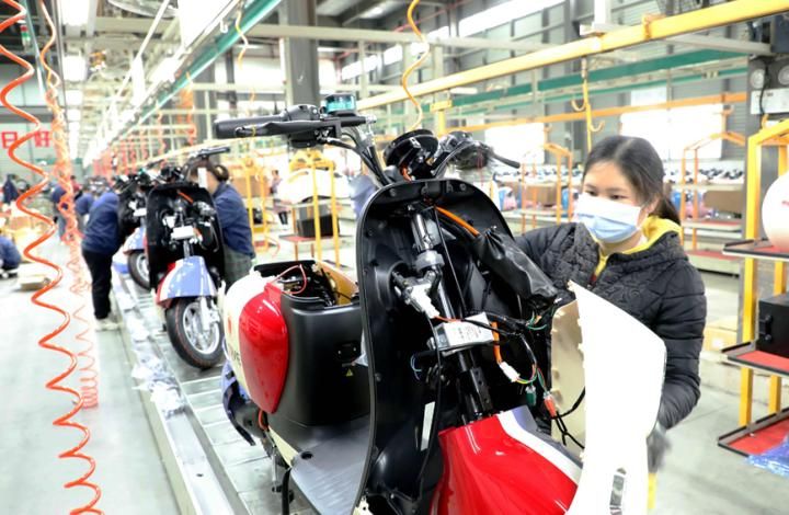 在广西绿源电动车有限公司生产车间里,机声隆隆,三条组装电动车生产线加速运转,工人们在自己的工位上有序地忙碌,争分夺秒赶制订单。该公司人事经理朱小兰说,公司在严格落实各项疫情防控措施的前提下,积极组织员工有序返岗,目前已有500多名员工返岗复工,车间里所有生产线全部开工。