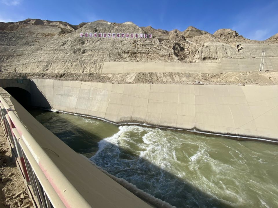 位于青海省海南藏族自治州境内的羊曲水电站部分导流明渠(1月26日摄)。新华社记者 王金金 摄