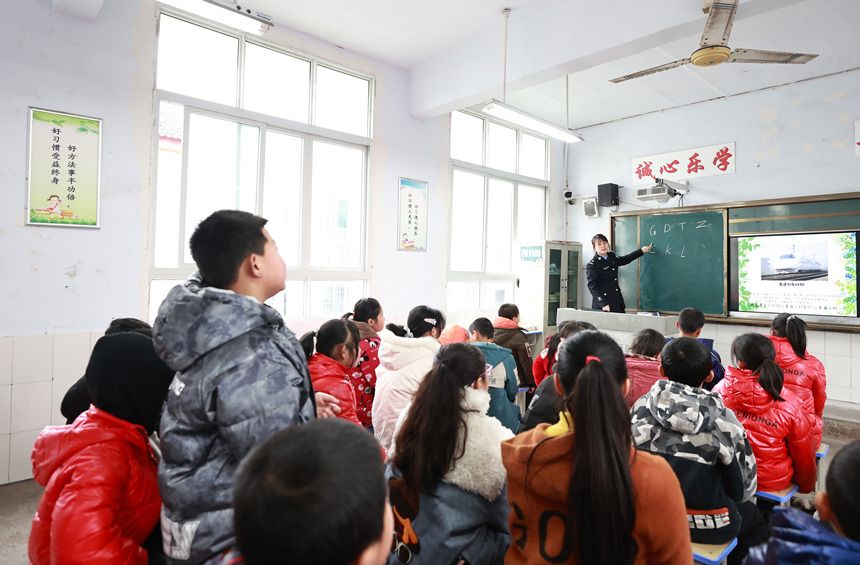 人民网重庆2月23日电 “离我们学校不远的地方就有铁路,同学们在外出春游时,有哪些行为是不能在铁路旁边做的呢?”2月22日,重庆铁路警方组织青年民警走进合川区金沙小学开展“铁路交通安全进课堂”活动。