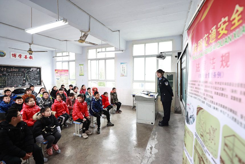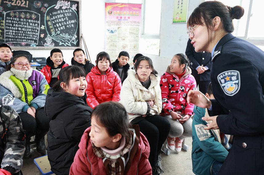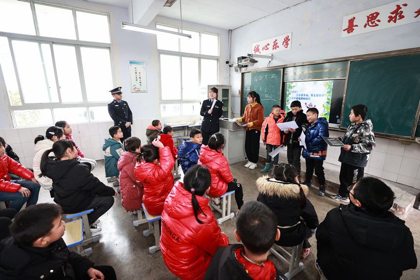 2月22日,民警在课堂上和学生进行互动。胡勇摄