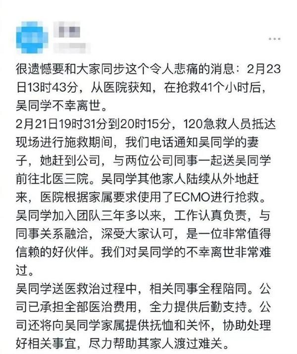 2月23日下午,字节跳动通报,在抢救41个小时后,员工吴伟不幸离世。