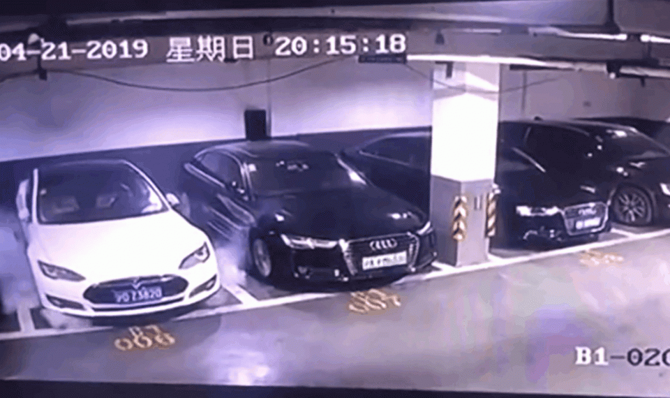 当时,停在地下车库内的一辆白色特斯拉轿车先是冒出白烟,很快燃烧起火,火势又殃及到周遭停泊的其他车辆。而由于地下车库散发出刺鼻气味,消防员一度无法进入车库,只能通过朝车库内灌水进行扑救。