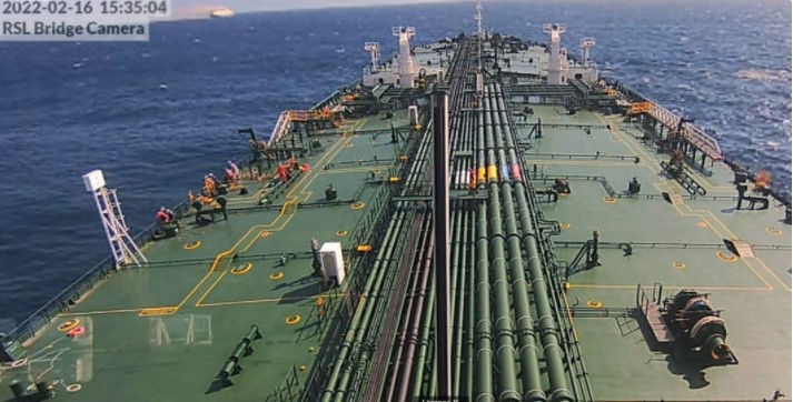 2月21日,两艘配备消防设备的大型拖船从直布罗陀抵达现场,并与巡逻艇一起向船上喷水,最初的打捞队也已经在现场为船上降温。